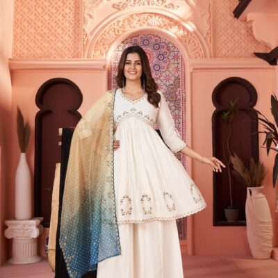 DR Kurti Hub – Ivory Embroidered Anarkali Suit with Ombre Dupatta