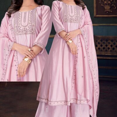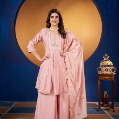 DR Kurti Hub – Blush Pearl Embroidered Suit