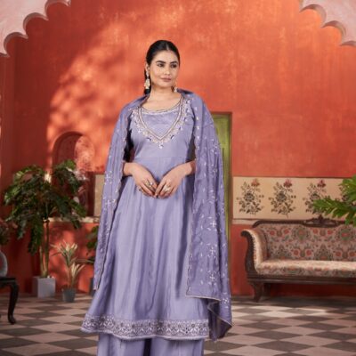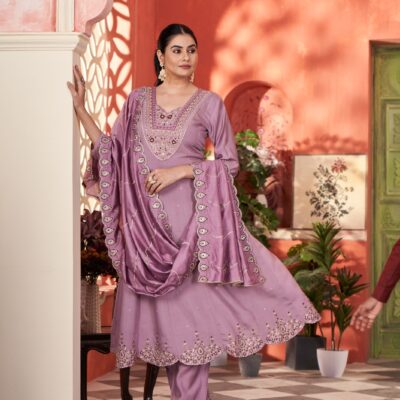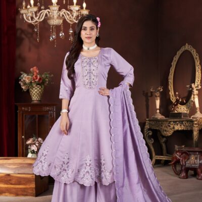 DR Kurti Hub – Lavender Grace Embroidered Suit