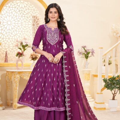 DR Kurti Hub – Royal Plum Embroidered Anarkali Suit