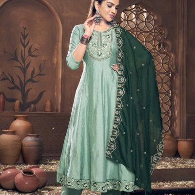 DR Kurti Hub – Emerald Grace Embroidered Suit Set