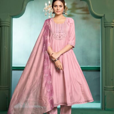 DR Kurti Hub – Blush Pink Embroidered Anarkali Set