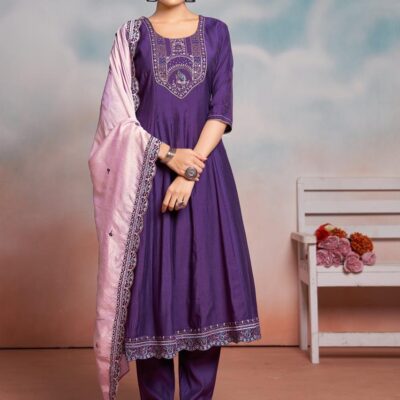 DR Kurti Hub – Royal Violet Embroidered Elegance Set